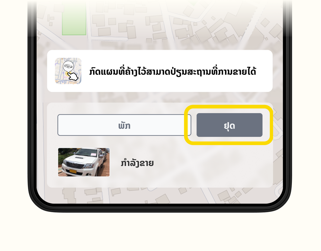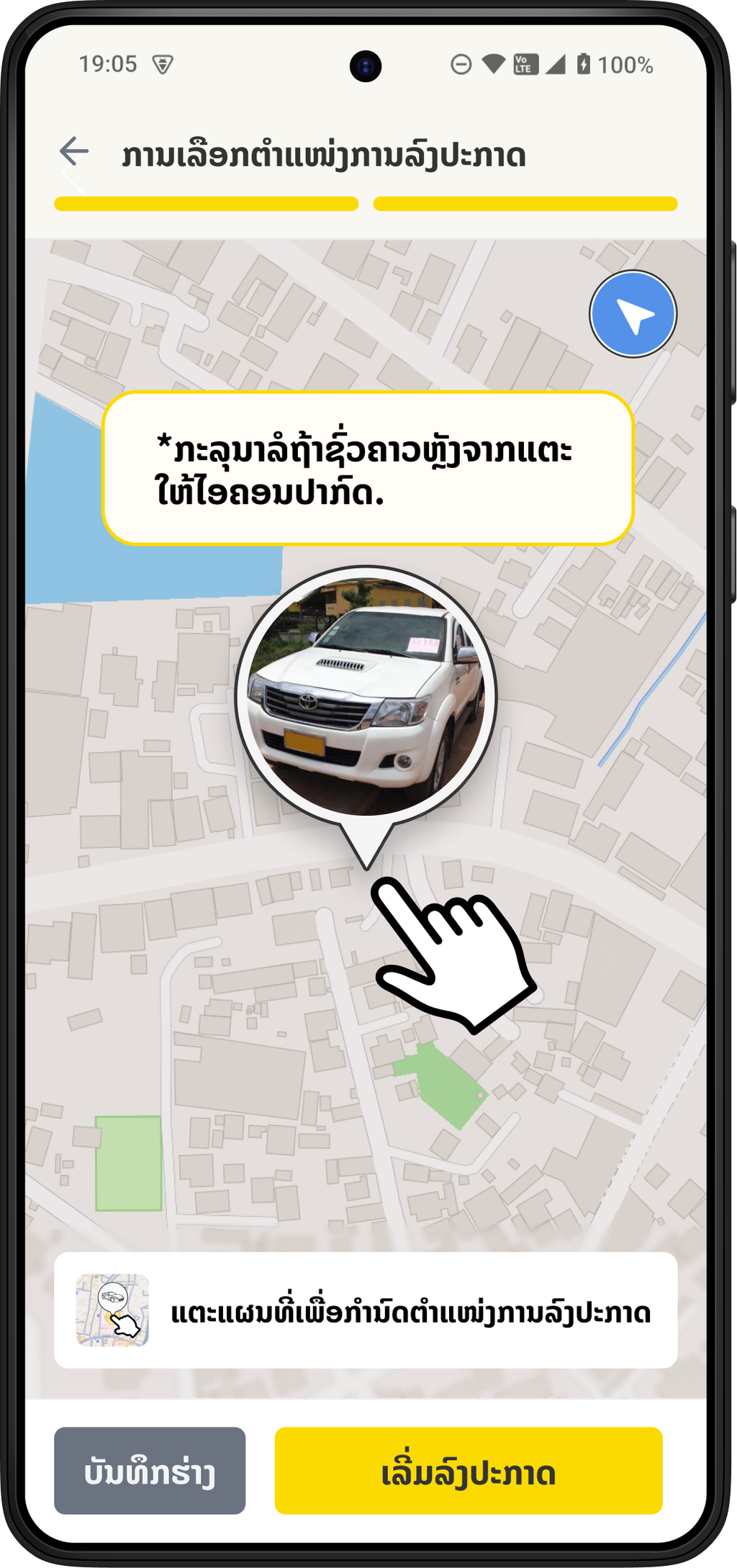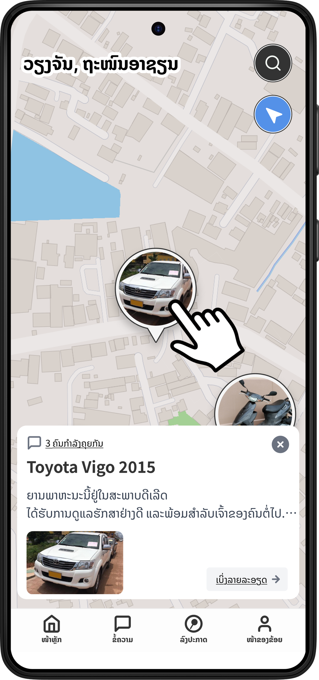 ເມື່ອທ່ານໂພສລົດຂອງທ່ານ, ມັນຈະປາກົດໃນແຜນທີ່ — ເຮັດໃຫ້ຄົນອື່ນໆເຫັນໄດ້ຫຼາຍແລະສາມາດໄປທີ່ສະຖານທີ່ຂາຍໄດ້ຢ່າງສະດວກ.